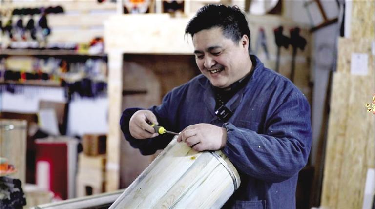 经过改良,陈华荣将太平鼓制作成了工艺品,并且申请了专利。“看到自己做的东西被别人买回去当艺术品摆在家里,或者当作礼物送人,听到有人赞美这个有价值有意义,我感觉挺欣慰的。”说到这里,陈华荣的眼睛都亮了。