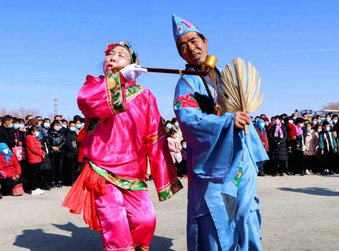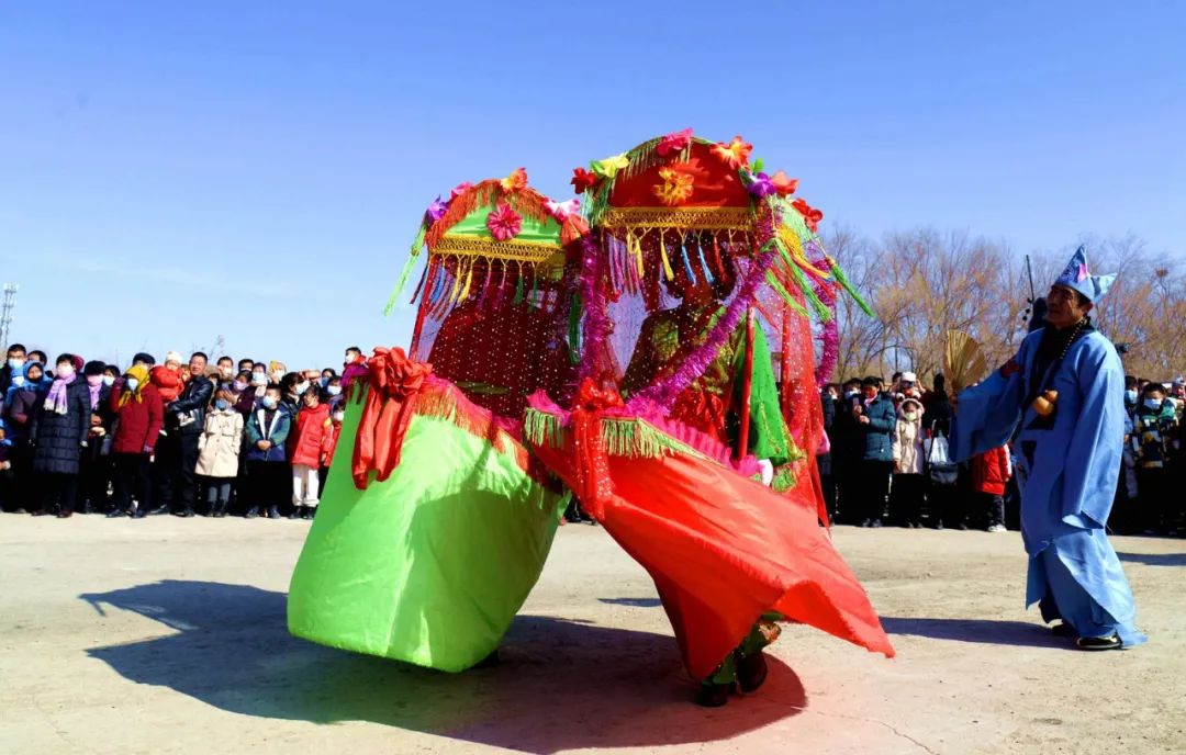 还有那划旱船,三五成群、一线儿排开,踏着鼓点、走着碎步,一进一退、一扭一晃,细腻活泼的表演,逗得观众捧腹大笑。此刻,场内场外,台上台下,舞者与看客,全然投入,人人脸上洋溢着春日的欢乐和喜庆。