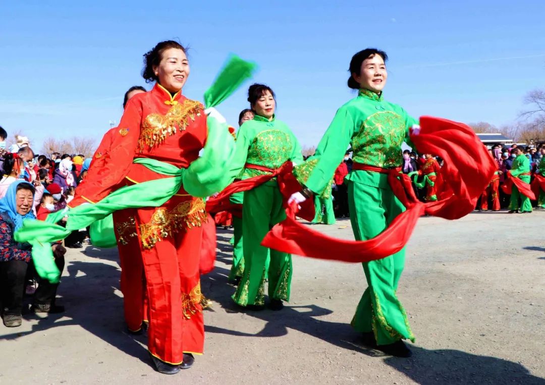 你方跳罢我登场。你瞧,那领跳的皓首老翁,眉宇颤动,肩拧胸扭,头身摆摇,“扭”出幸福新高度;看,那独舞的花衣媪妪,腾高雀跃、手舞红绸,“跳”出美好新生活。大家歌盛世、庆华年,在传统民俗活动中感受着浓浓年味。
