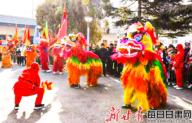 农历甲辰龙年正月初六,武威市凉州区黄羊镇山泉村传来阵阵锣鼓声,循着声音走进山泉村的乡村大舞台文化广场,载歌载舞的社火队映入眼帘。耍龙、舞狮、扭秧歌、划旱船等,广场上,村民们个个精神抖擞、神采飞扬,伴随着鼓点跳着欢快的舞蹈。