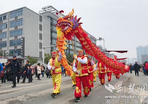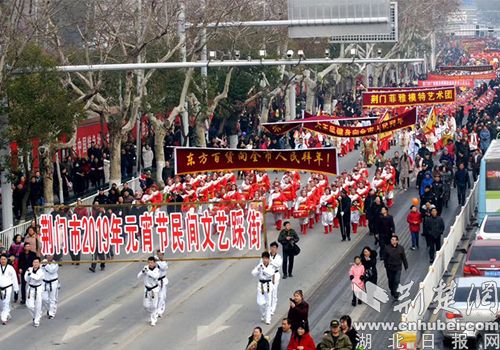 荆门市2019年元宵文艺踩街启动仪式。记者 安从斌 摄