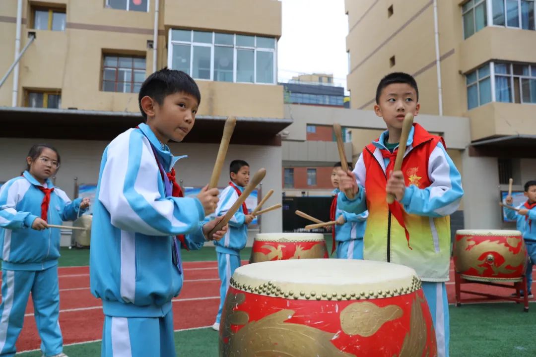 每周两节黄河战鼓非遗社团,孩子们都无比期待,虽然是第一次接触,学习时间又短,可孩子们的进步是飞快的,几节课下来已经能演奏一段完整的曲谱。