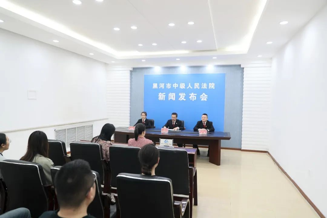 黑河中院党组成员、政治部主任王志宇主持发布会,民二庭庭长王铁、爱辉区法院行政庭庭长范海妮通报相关工作情况,并发布二起典型案例。