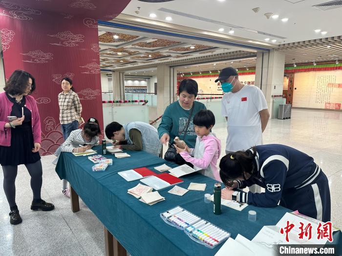 4月14日,西藏文化博物馆中正在举办《高原中华龙》展览的观众互动活动。 尹李梅 摄