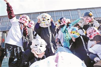 本报讯(记者 王岩)3月30日下午,一条10米长的巨型中华鲟玩偶被70位衣着时尚的年画大头娃娃抬到了北京798艺术区包豪斯广场。