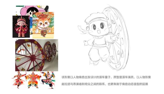 滚车童子的设计灵感来自黄山区非遗——轩辕滚车,轩辕滚车是黄山人民为纪念最早的车发明者轩辕黄帝而举办的民俗活动。