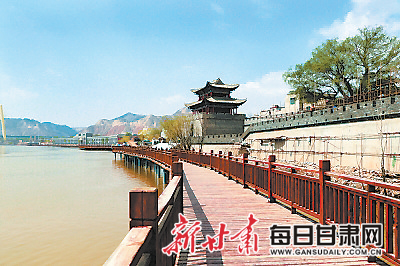移步换景,走到古镇另一个极具引力的景点,“十里黄河金岸”,行走在“十里黄河金岸”上,让我浮想联翩,想象着昔日的商贾繁忙,感受着远去的古城风韵,似乎依然能看见漂满河道的筏子,听到高昂悠扬的“花儿”,让人陶醉在了水光潋滟之中。