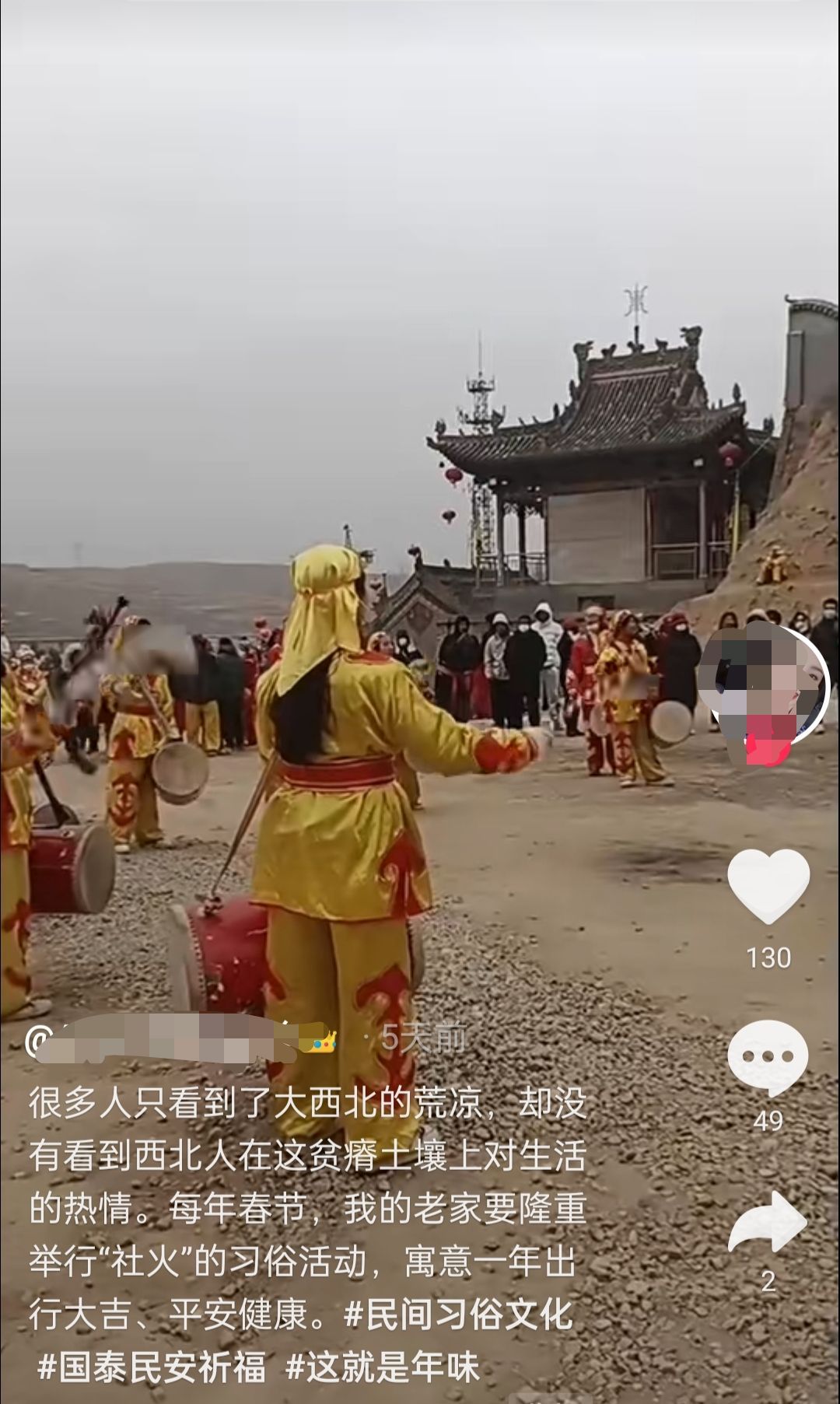 2月26日,该网民继续发布配以社火表演队伍的视频,并配文“看到这个视频,就特别痛心,我那受伤住院的队友们。”