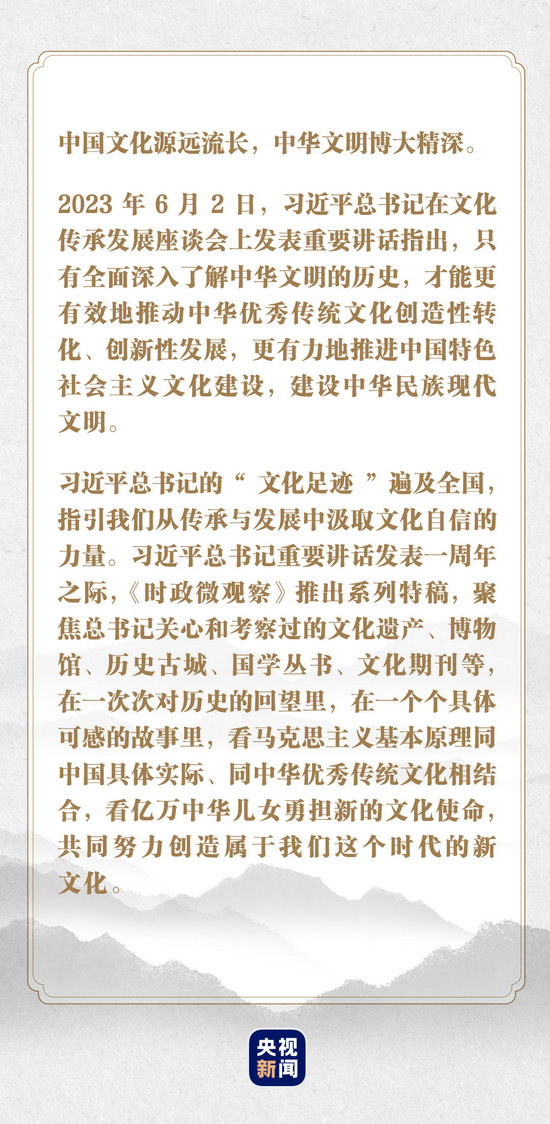 去年,在文化传承发展座谈会上,习近平总书记指出,自信才能自强。有文化自信的民族,才能立得住、站得稳、行得远。中华文明历经数千年而绵延不绝、迭遭忧患而经久不衰,这是人类文明的奇迹,也是我们自信的底气。