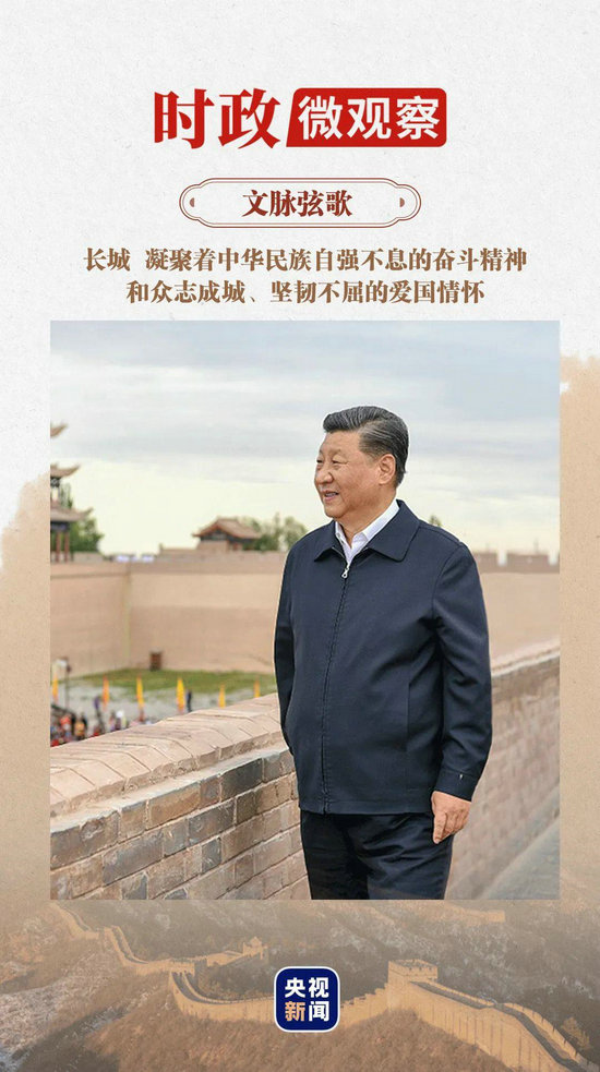 “长城是中华民族的代表性符号和中华文明的重要象征,凝聚着中华民族自强不息的奋斗精神和众志成城、坚韧不屈的爱国情怀。”