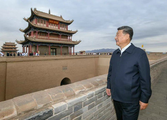 △2019年8月20日,习近平总书记来到嘉峪关关城,登上城楼察看关城整体面貌,听取河西走廊长城、关隘历史文化情况介绍。