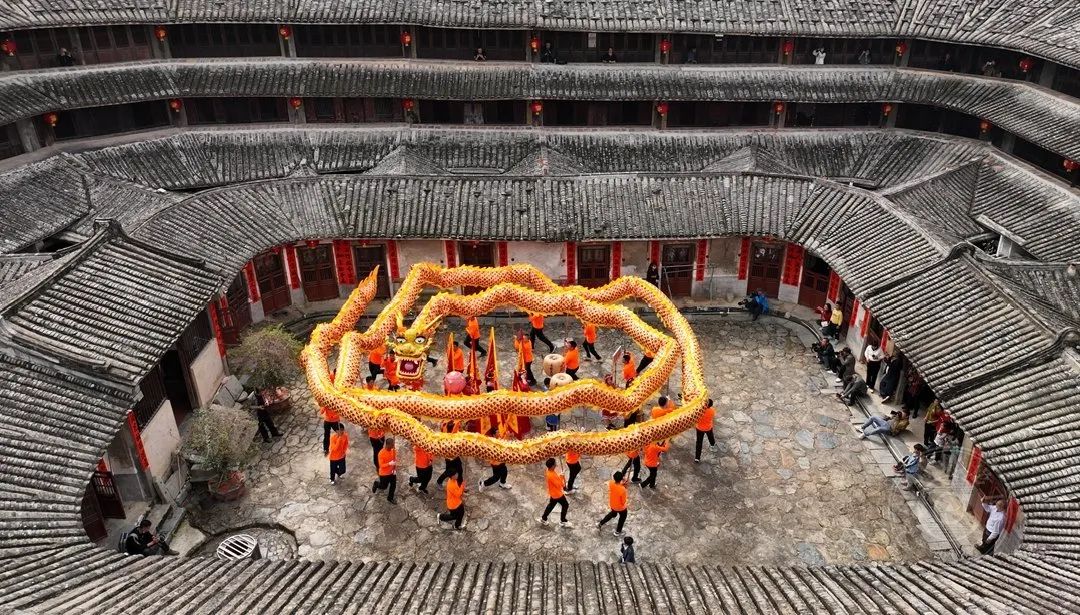 泰华楼是饶平唯一的畲族土楼,正月里,舞龙队伍走进泰华楼,以舞龙的形式庆祝新年。