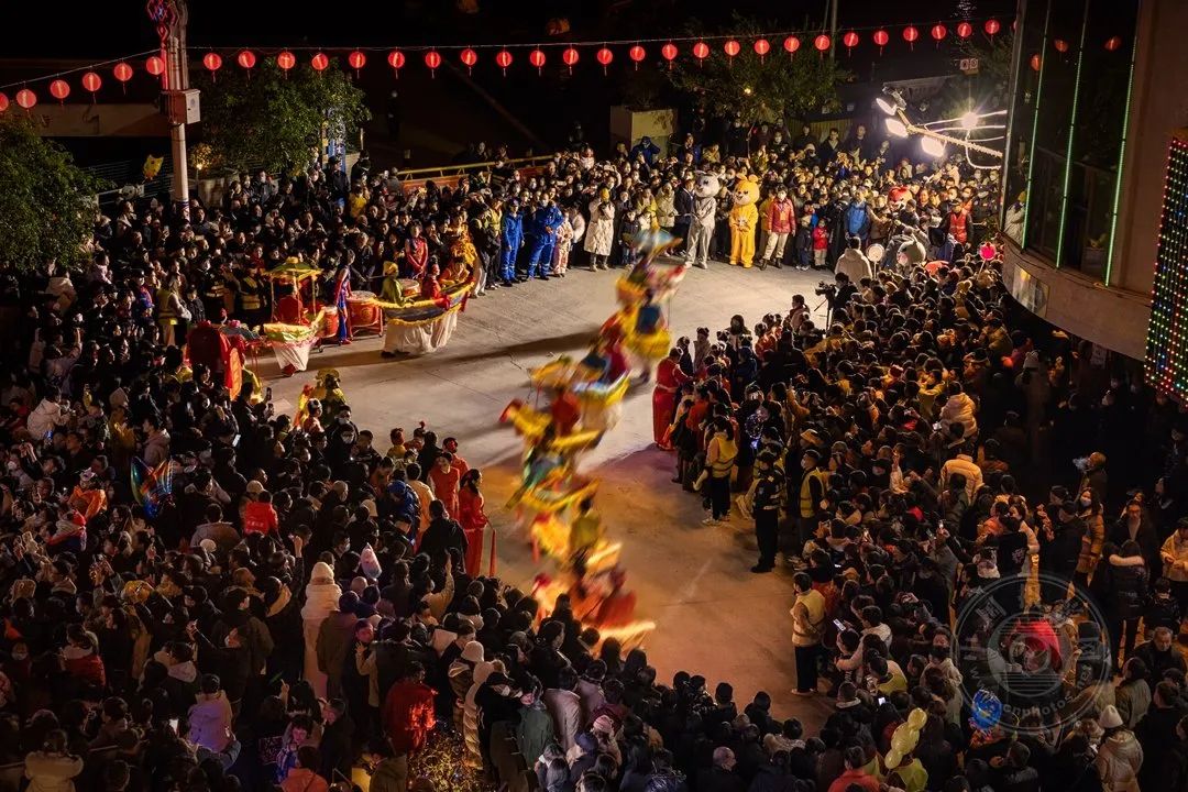 2024年2月,广东梅州国家级非遗项目埔寨“龙舞”闹元宵表演现场鲤鱼飞舞。