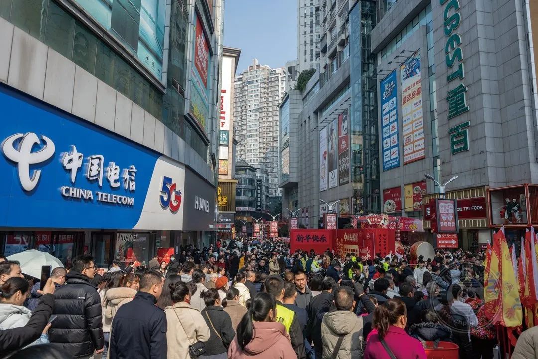 2024年2月11日,拍摄于四川省泸州市江阳区水井沟步行街,大年初二步行街人来人往。
