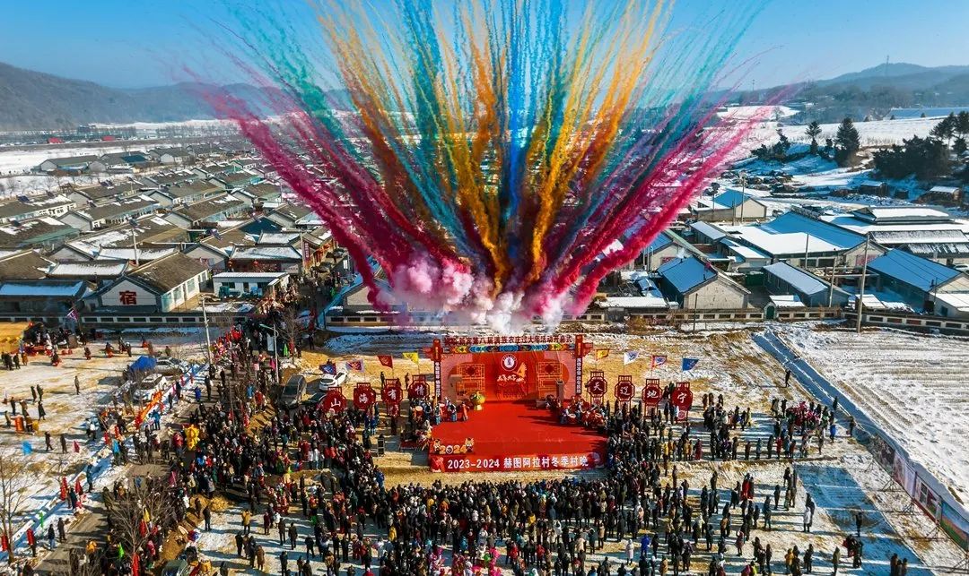 2024年1月19日,拍摄于辽宁新宾赫图阿拉春过大年赶大集村晚开幕式上。这里是清王朝的发祥地,是全国第一个满族自治县,为了让百姓过上一个幸福祥和的春节,他们办农民自己的冬季村晚活动,赶大集、盛世锣鼓、满族大秧歌、龙娃人偶、杀年猪祭祀、龙年舞大龙等活动,深受四方群众欢迎。