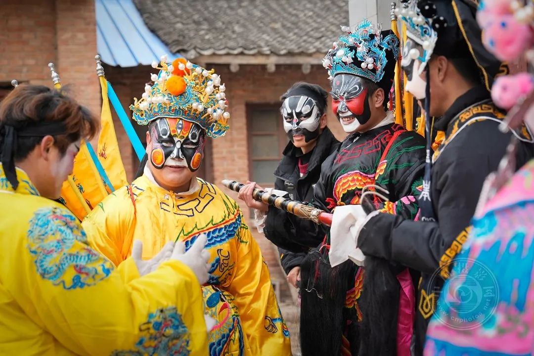 据白石村朱家庄的老人介绍,此地社火采用的是北宋抗金故事“杨家将”中不同角色的戏剧脸谱和服饰来塑造社火队员,并以徒步方式走村串乡,挨家挨户驱魔祈福,所到之处村民门户大开,鞭炮迎接,社火队锣鼓开道,在庭院中环绕一周,驱魔祈福岁岁平安。