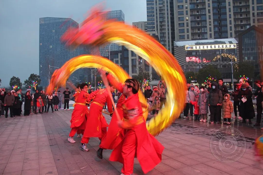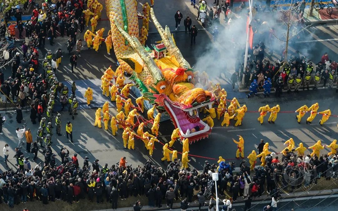 2024年2月11日,拍摄于湖北鄂州燕矶。国家非遗400年历史嵩山百节龙。