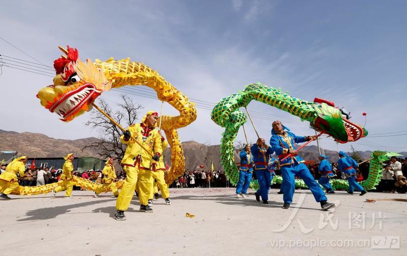 2024年2月15日,甘肃省陇南市武都区汉王镇宗家堡村,村民正在舞龙表演。
