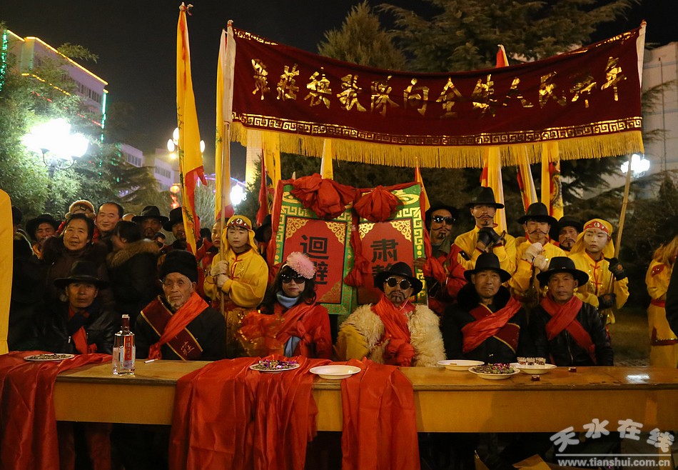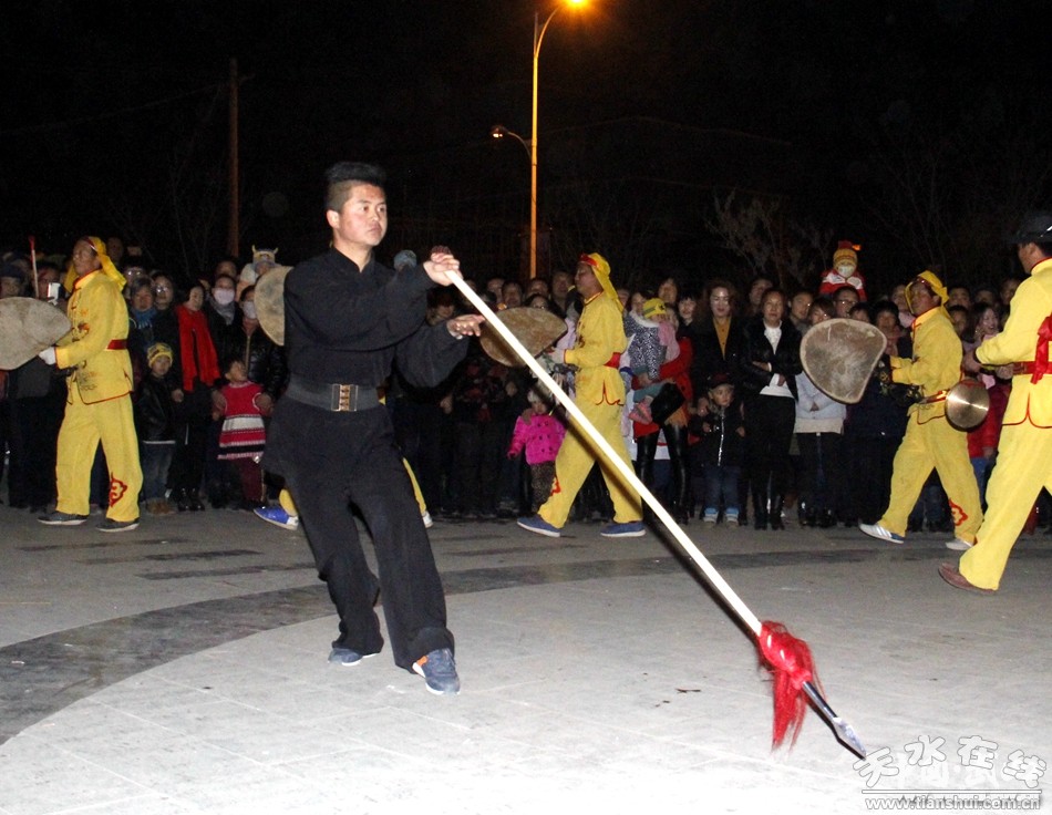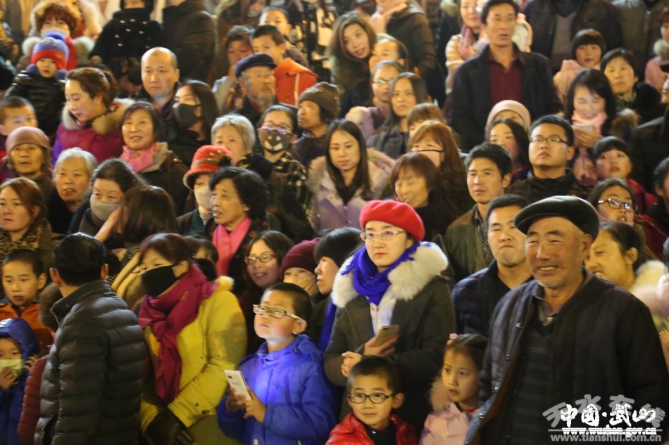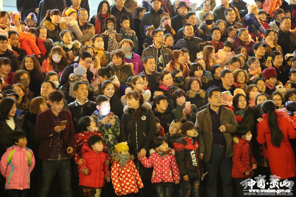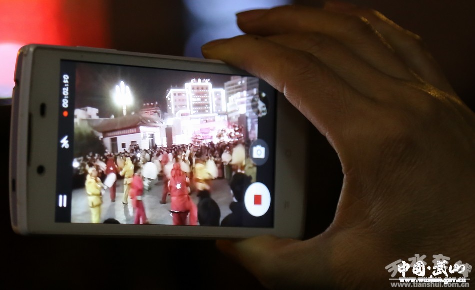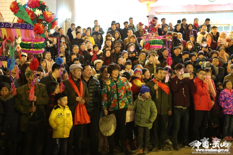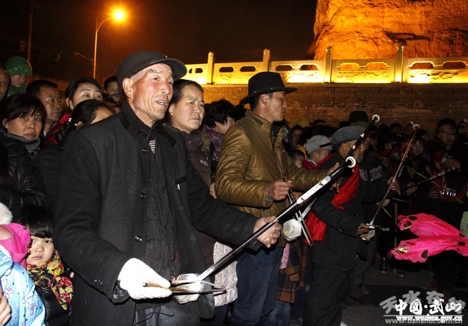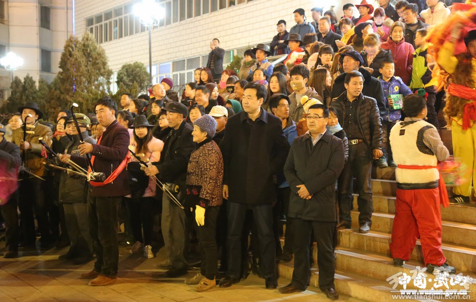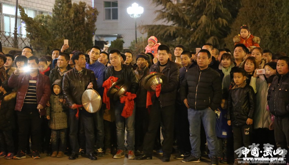 晚上八时许,来自滩歌镇罗庄村、洛门镇石岭村、城关镇红沟村的社火表演队走进县城,在宁远广场、群众文化中心和风云雷雨坛广场进行社火表演,向全县人民拜年。整个武山县城呈现出一片锣鼓喧天,人山人海的热闹景象。