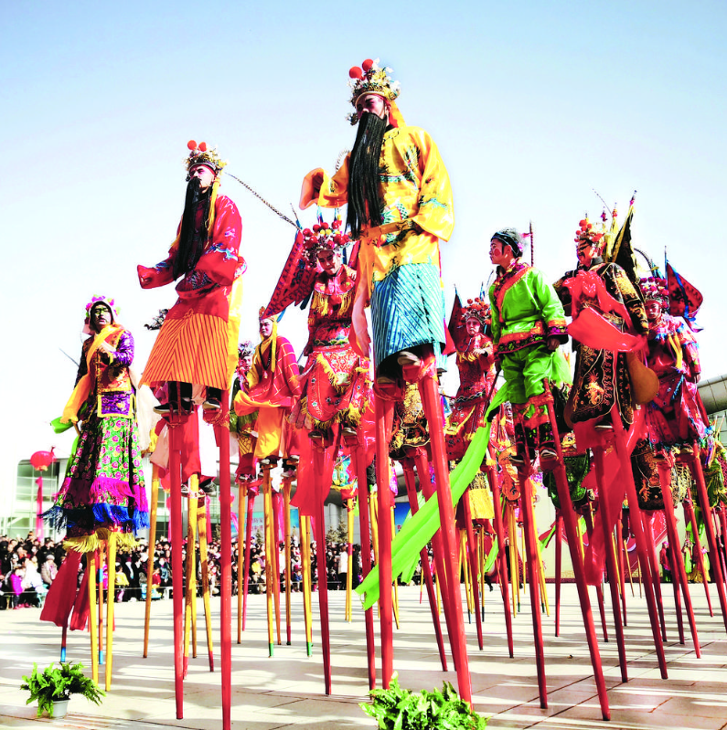 高、悬、巧、奇是鲁沙尔高跷的特点,高跷平均高度达2.8米(脚踏板以下),最高的达到3.6米,2013年,被列入青海省非物质文化遗产保护名录。每年正月十二、十四、十五、十六,人们相聚在鲁沙尔镇街头一览社火这一中国古老风俗的魅力,赞叹高跷表演的神韵。