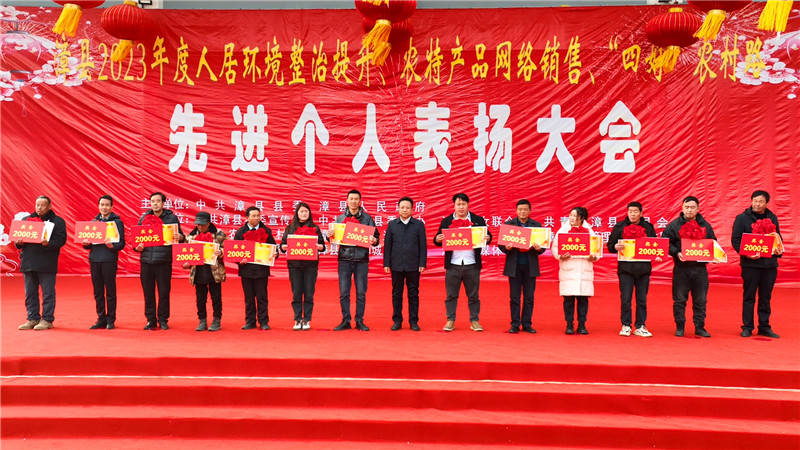 下午2点半,漳县人居环境整治提升表扬大会暨春节社火秧歌展演活动又在县体育馆拉开序幕。活动现场对2023年度全县“人居环境整治带头人”“最美家庭女主人”“最美环卫工”和“最美庭院”示范户一一进行了表彰。大家纷纷表示,要以先进典型为榜样,积极参与到环境整治中来,为建设生态美丽宜居漳县贡献自己的力量。