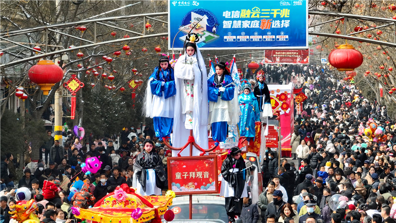 徐平带着父母来观看社火,他说:“社火既是中国的非遗文化,又是传统文化,希望这样的活动年年举办”。