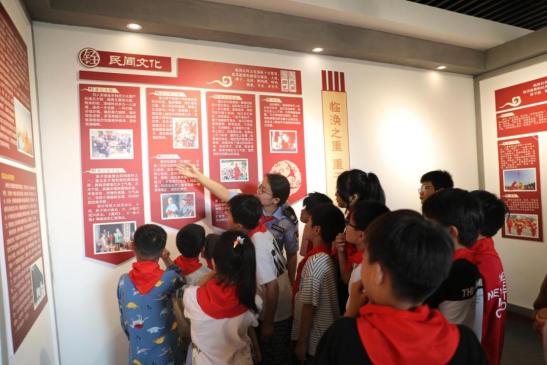走进临涣镇综合文化站,映入眼帘的是临涣文化展览馆,展厅里设计了不同的文化功能区,志愿者向孩子们讲解了临涣的历史文化、民间文化、饮食文化、民俗文化和红色文化,孩子们听的神采飞扬、专心致志,语气中充满了对家乡的热爱和自豪。紧接着大家来到民俗道具室,看到各式各样的道具,孩子们眼神里充满了好奇和期待,志愿者和文化站负责人又带领孩子们学习“竹马”“旱船”“大头娃娃”“河蚌舞”等表演技巧,不仅让孩子们进一步感受到非遗和中国传统文化的独特魅力,也激发了民俗文化传承的生机与活力。
