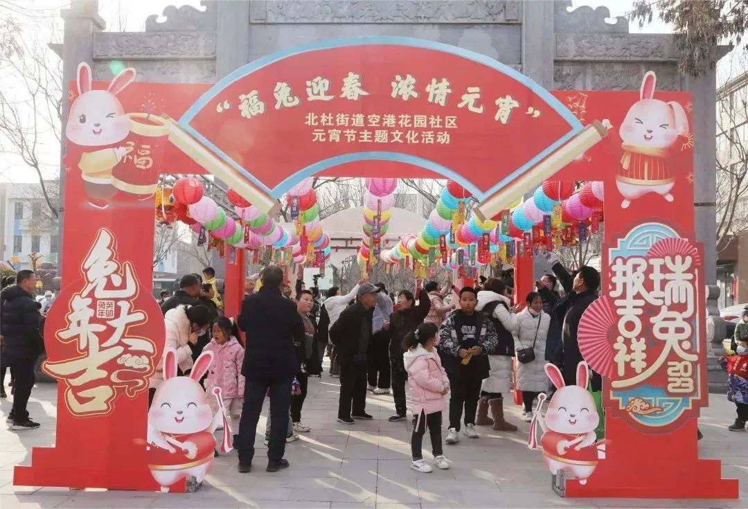 在北杜街道空港花园社区,“福兔迎春,浓情元宵”元宵节主题活动在阵阵锣鼓声中拉开序幕,观花灯、猜灯谜、汉服秀等活动让居民在欢声笑语中感受浓郁节日氛围。