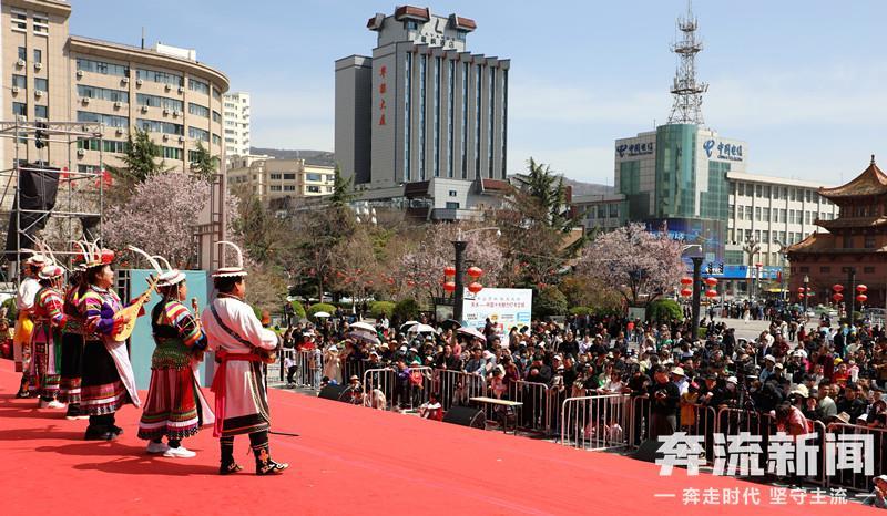 3月30日,清水县歌舞剧《轩辕大帝》在天水市龙城广场演出,为天水麻辣烫“上分”助力。新甘肃·甘肃日报记者 高樯