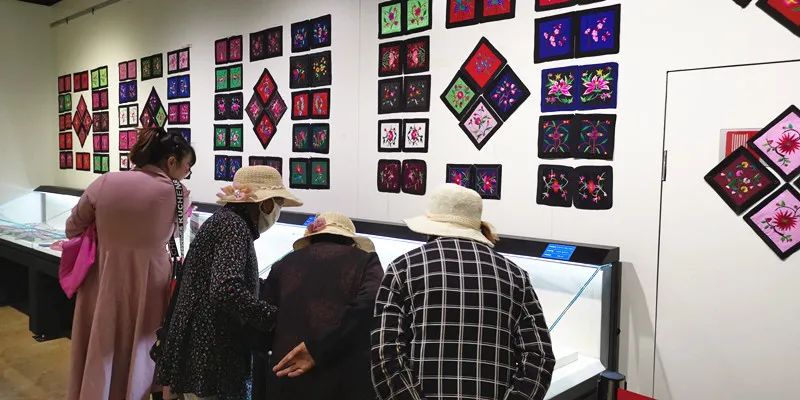 体验完青绣制作,从鲁沙尔镇南门村赶来的李老太,拉着姐妹们走进青绣展览区。眼前色彩斑斓的作品让她们连连赞叹。“你们看,这个针法绝了。还有这边,年轻时我们也能绣出这样的作品。”李老太望着墙上的刺绣作品,想起了年轻时和姐妹们一起刺绣拉家常的日子。