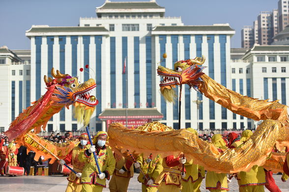 锣鼓喧天歌盛世,龙腾狮舞闹新春。2月4日,恰逢立春,临洮县举行新春社火展演活动,由18支社火队和20辆大型彩车组成的巡演队伍走上县城街头,与全县人民共贺新春。舞龙、耍狮、秧歌、旱船……一场极具“乡土”气息的社火表演将年味儿拉满。