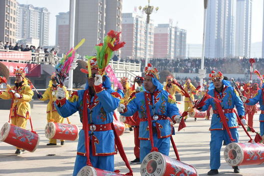 气势磅礴的太平鼓铿锵震天,声如滚滚春雷、万马奔腾,敲响了太平盛世、五谷丰登。跑旱船、扭秧歌等等精彩节目轮番上演,“貂蝉送福”社火表演,将临洮县春节文化活动推向了高潮。