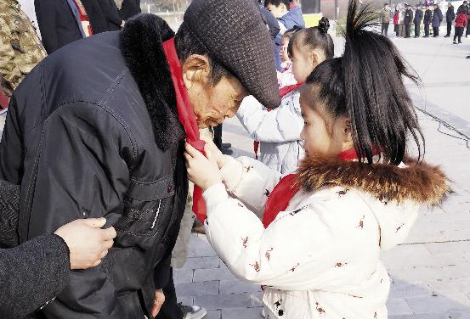 当日活动现场暖意融融,爱心人士为陇县、千阳的60名生活困难的退役军人每人送去了500元现金和油、米、奶及围巾,少先队员还为他们戴上了红领巾(见右图)。据了解,这些退役军人由各镇村推荐,生活中都存在较大困难。今年80岁的退役军人胡志张是陇县曹家湾镇三联村低保户,收到慰问金和慰问品后,他感动地说:“有党和政府及众多爱心人士的关心,我的生活一定会越来越好!”