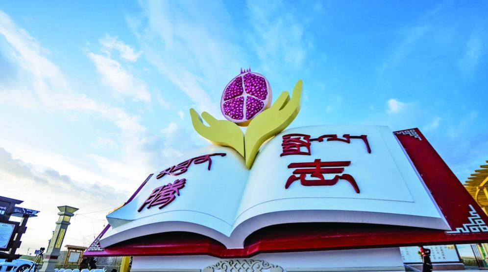 “当初我们将广场取名为腾志,在藏语里就是团结的意思。走,我带你去村里转转!”热烈的锅庄舞结束,索南才夫旦带着记者,来到广场中间,映入眼帘的是广场标志——一本打开的巨书,书页上一双手托举着一个鲜艳的石榴,寓意着各民族像石榴籽一样紧紧抱在一起。