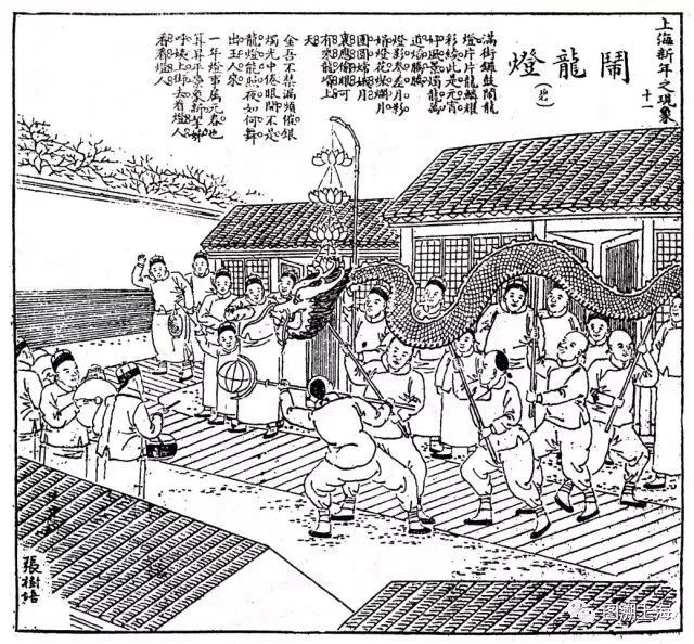 先说上海。曾经的上海年味可是不输任何地方的。元宵节除了看花灯、猜灯谜之外,在上海还有两种与众不同的“灯”。清张春华《沪城岁时衢歌》里有一首这样描绘道:艳说年丰五谷登,龙蟠九节彩云蒸。瞥如声涌惊涛沸,火树千条抢滚灯。舞龙灯,就是其中最主要的了。