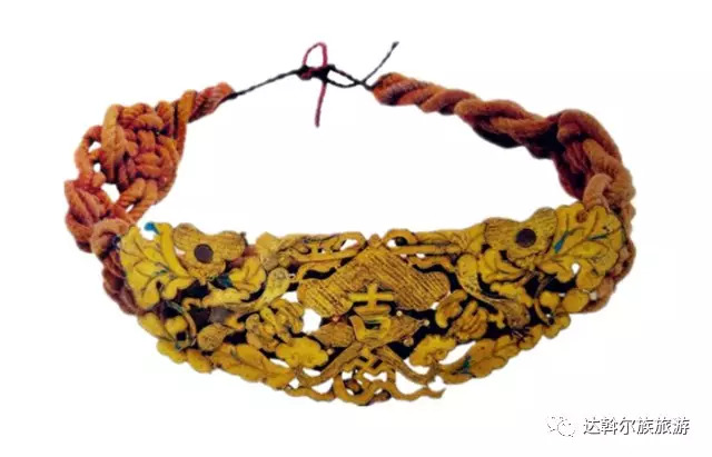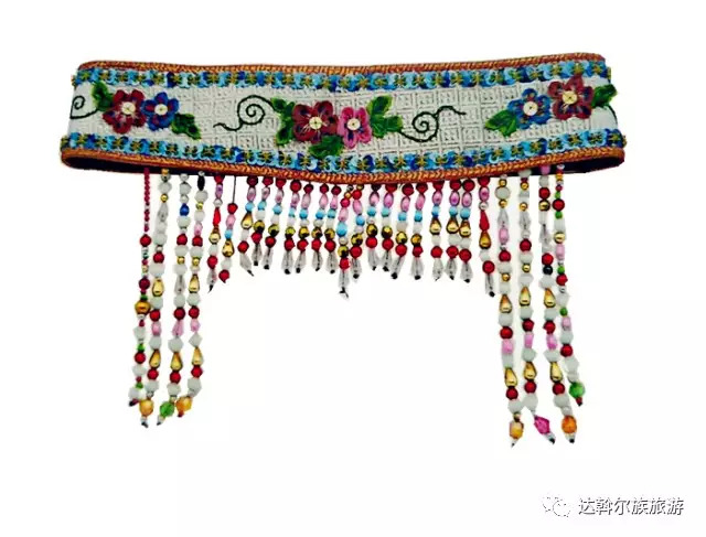 达斡尔族妇女有在前额束头带的习俗,但因年龄的不同,样式也有所不同。小女孩和年轻妇女的头带会有珠串流苏,而老年妇女的头带则仅在中间部位有一个小的金属或珠宝的装饰物。