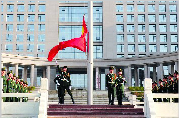 上官吉庆张民义陈光明等参加国庆升旗仪式