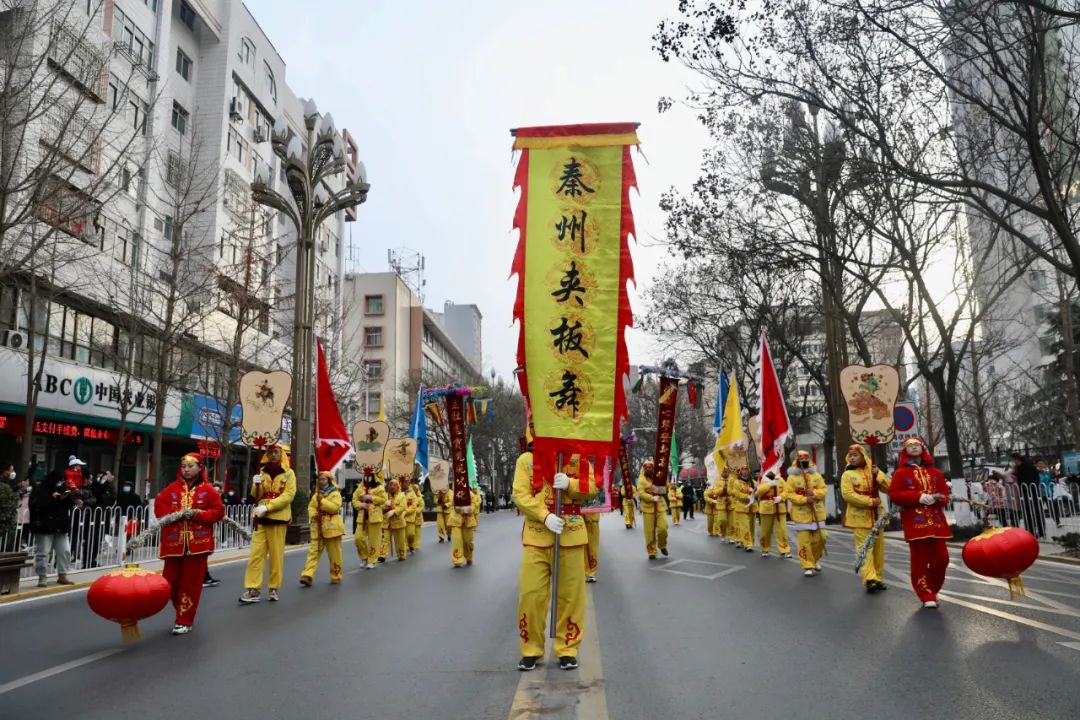 秦州区16镇7个街道办事处的23大方队约100多个文艺团队2000余人,带着新春的问候和祝福,整装齐聚,隆重登场。