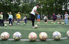 7月4日,在重庆市北碚区水土街道和悦家园社区,小朋友在大学生志愿者指导下练习踢足球。7月4日,在重庆市北碚区水土街道和悦家园社区,大学生志愿者在给小朋友讲解硬笔书法知识。