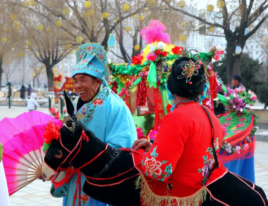 汇演现场,舞龙斗狮、秧歌、太平鼓、划旱船,社火队员们身着艳丽的服装,个个精神饱满。腾飞的祥龙、旋转的花伞、翻飞的彩扇、华丽的旱船、憨态可掬的大头娃娃等等,引得现场观众掌声阵阵,处处洋溢着一片欢乐祥和,年味十足。