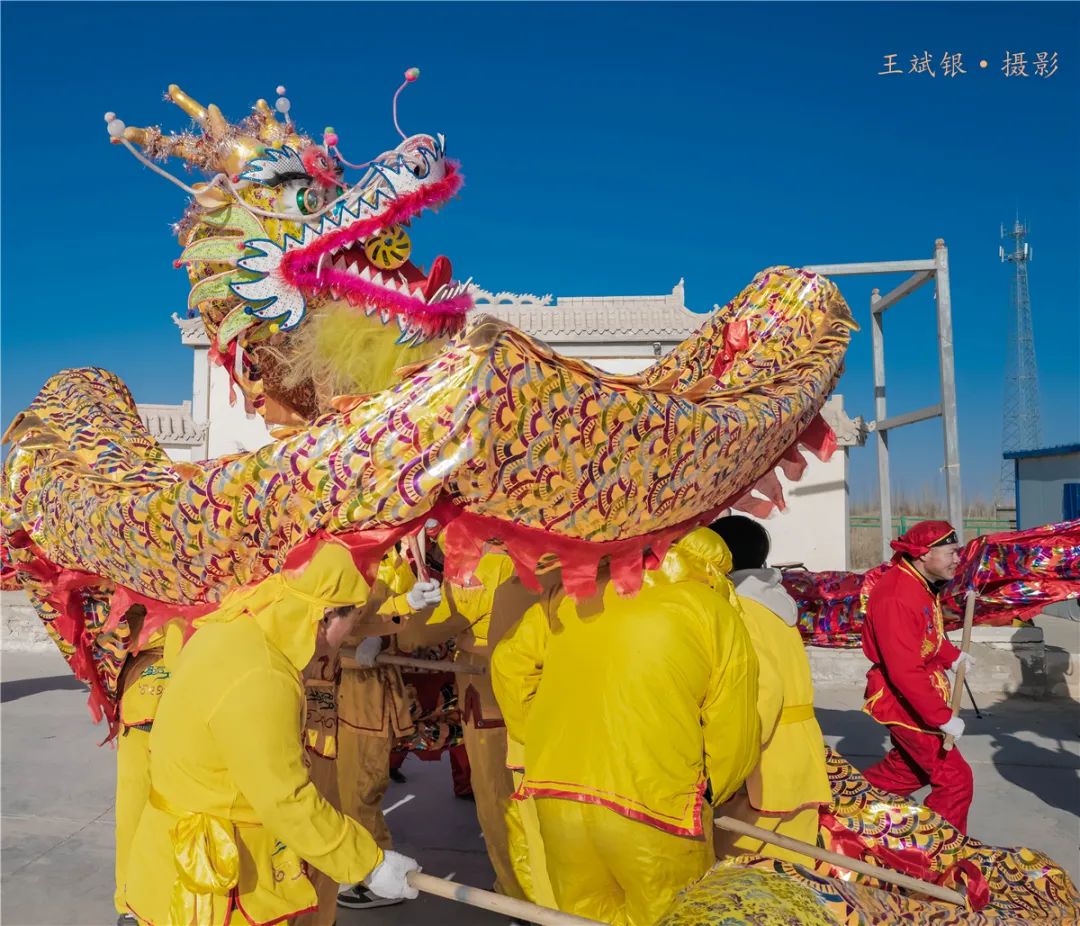 元宵佳节即将到来,敦煌市民间艺人在乡村进行舞龙、太平鼓、跑驴、划旱船、迎新娘等传统社火节目表演,与群众一起闹春迎元宵。