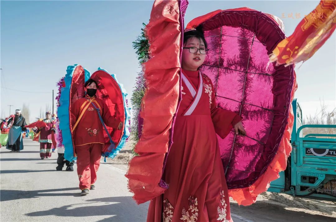 图为:2023年2月2日,敦煌市转渠口定西村社火掠影。
