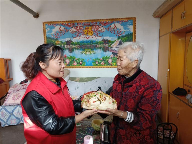 皋兰县砂岗村弘扬孝善文化,干部为村里老人送月饼   安娜 摄