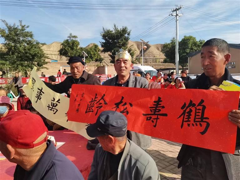 皋兰县“敬老孝老·爱在重阳”活动中为过生日老人送书法作品    安 娜 摄