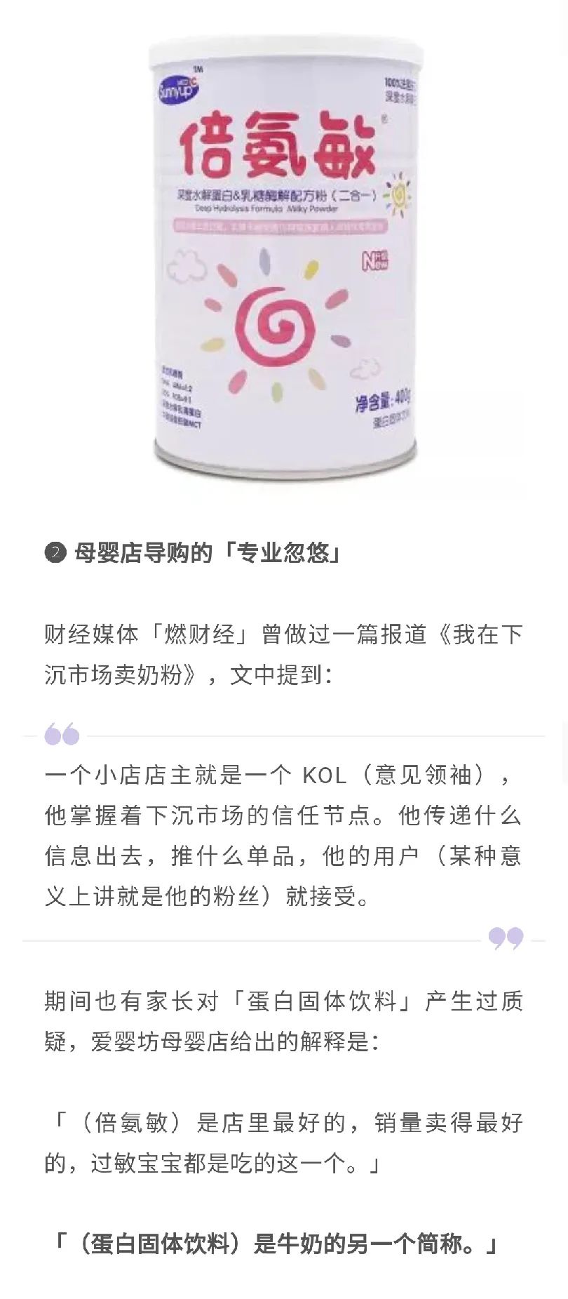 在医生们的仔细询问下才知道,这些孩子都有一个共同点:他们都曾在同一家「爱婴坊母婴店」,给孩子购买、喂食了同一款「特医奶粉」—— 倍氨敏。