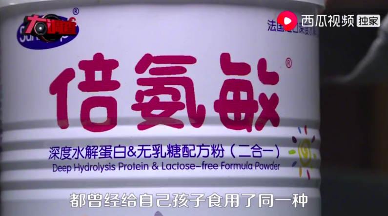 在医生们的仔细询问下才知道,这些孩子都有一个共同点:他们都曾在同一家「爱婴坊母婴店」,给孩子购买、喂食了同一款「特医奶粉」—— 倍氨敏。