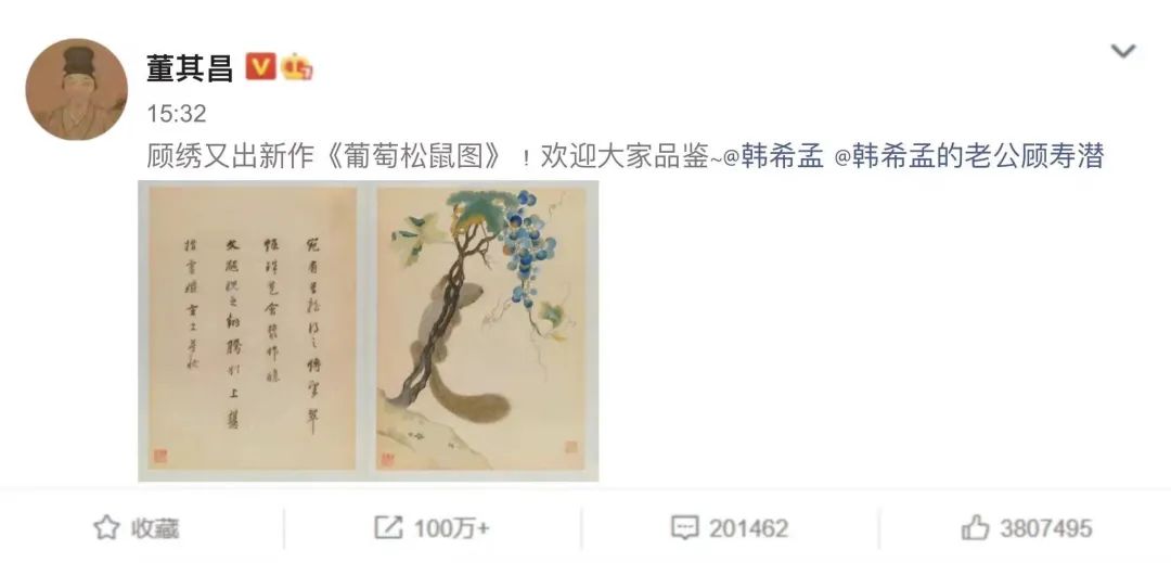 然而,要使顾绣真正名震江南,还要靠一位“大V”的流量加持,那就是韩希孟的“铁粉”兼师傅,松江画派文人画领军人物董其昌。其多次为韩希孟的作品题款,叹为“精工夺巧!”也正是有了董其昌的“积极转发”,才开启了世人认识顾绣艺术价值的目光。