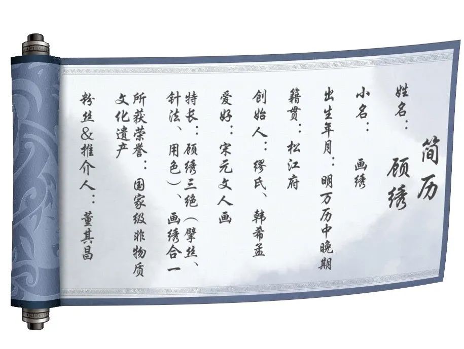 要说顾绣的创始人,离不开2位杰出的女性。其一是缪氏,顾名世长子顾汇海之妾,她以绣艺描摹字画,开了“画绣”之先河。