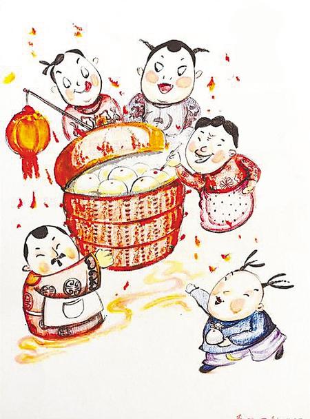 人们辛苦了整整一年,除夕晚上全家老小定要团圆,在家中吃团圆饺子。饺子形如元宝,取“招财进宝”之意,饺子馅中可以包进硬币和干果,以寄托人们对新年的一种祈盼。这顿年夜饭可以从傍晚一直吃到天黑,席间人们多彼此祝愿的话语,充满欢乐温馨气氛。