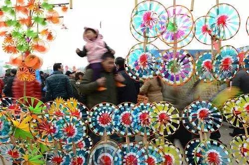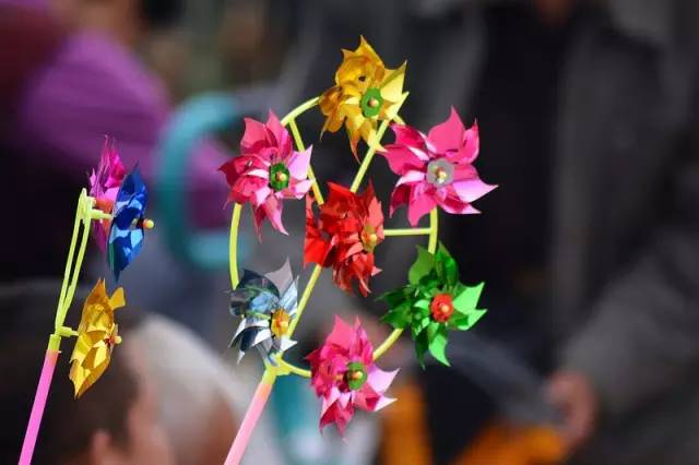 风车是庙会上最常见的玩具,孩子们几乎人手一个。